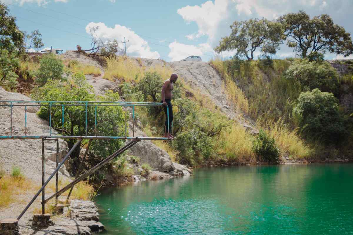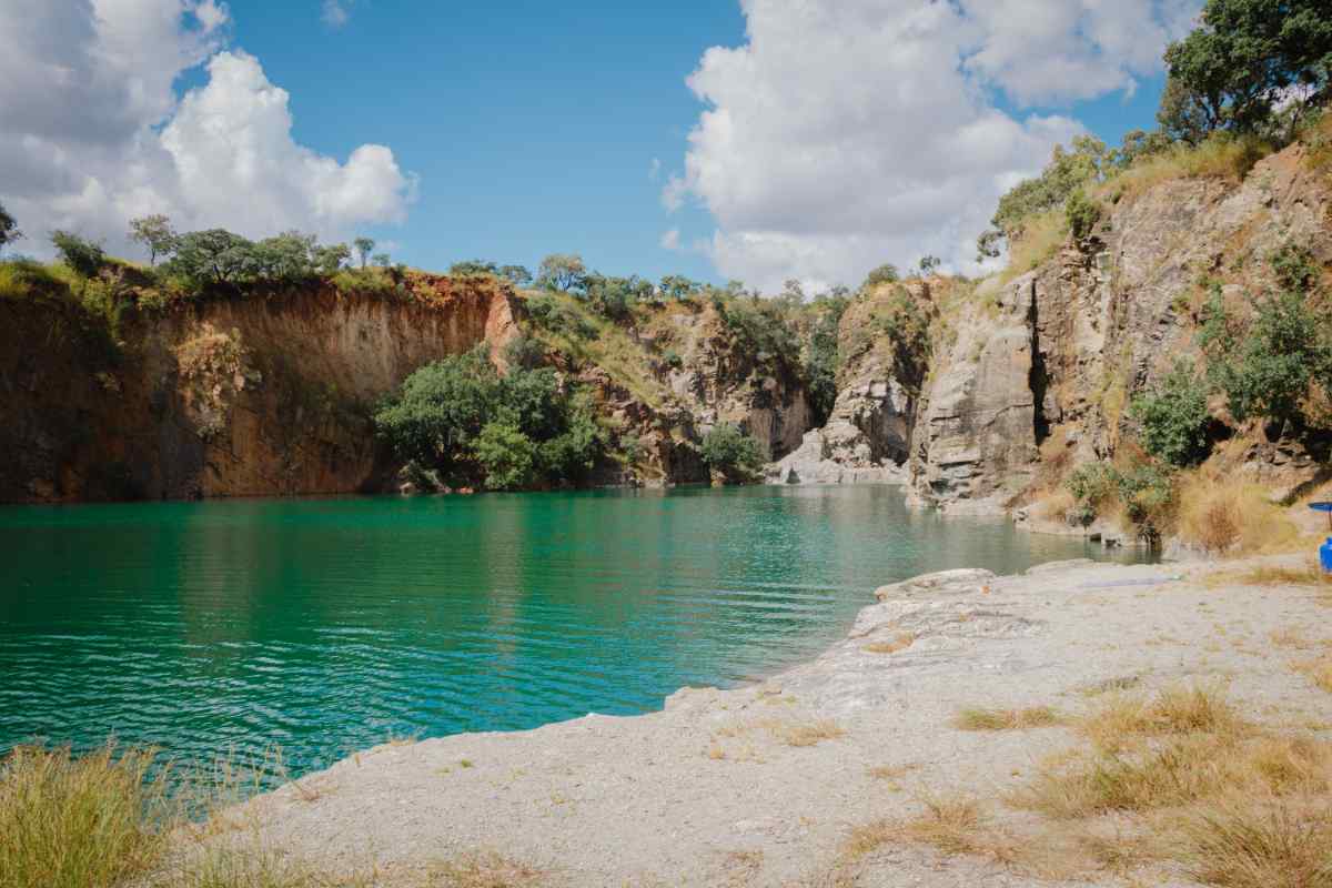 The Mutorashanga Green Pools are located in the Great Dyke of Zimbabwe, just over 100 km north of Harare. These striking turquoise pools are the by-product of mining activity that dates back several decades.
